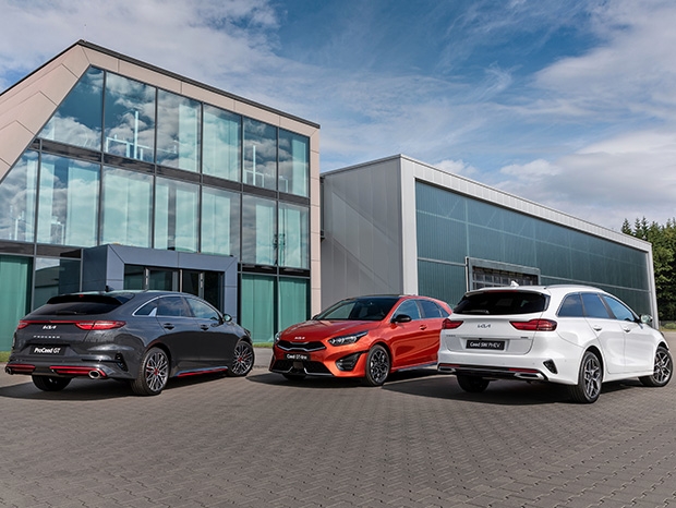 The five-door hatchback, sports estate and shooting brake versions will feature a completely redesigned front section, sporty updates to the rear, redesigned light metals, and refreshed body colors and interiors when the new models go on sale at the beginning of the fourth quarter. In response to customer and industry trends, the series will also be available with new drive trains and gearboxes. A completely redesigned front end shows the new Kia logo, a simplified graphic of the company name that reflects the ethos of “movement that inspires”.